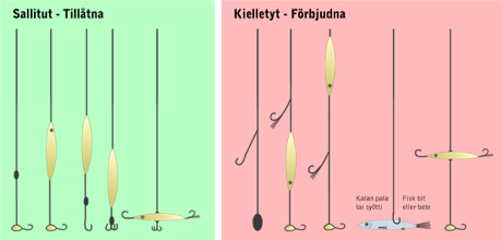 Kilpailukalat: Kaikki Tornionjoen kalastussäännön mukaiset kalat. Pois lukien taimen, lohi ja harjus. Kilpailun ja lain sallima kala on jäälle noston jälkeen tapettava välittömästi.